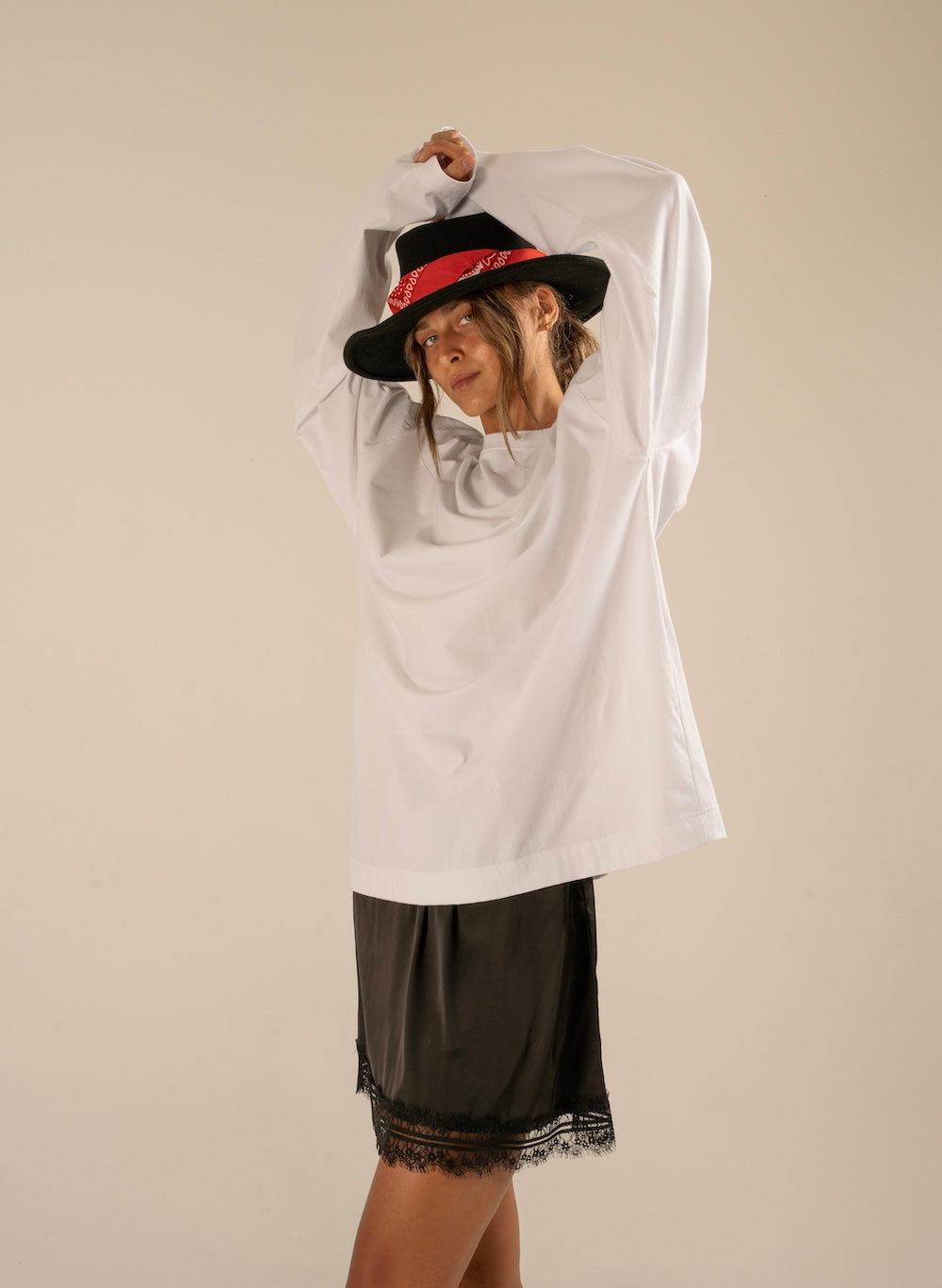This long sleeve is crafted from soft breathable cotton and features an exclusive print by Indonesian multidisciplinary artist Riz. His playful mix of feminine figures, animals and poetic symbols brings a dreamy yet powerful energy to the piece, turning everyday wear into a small wearable artwork made to feel both personal and alive.